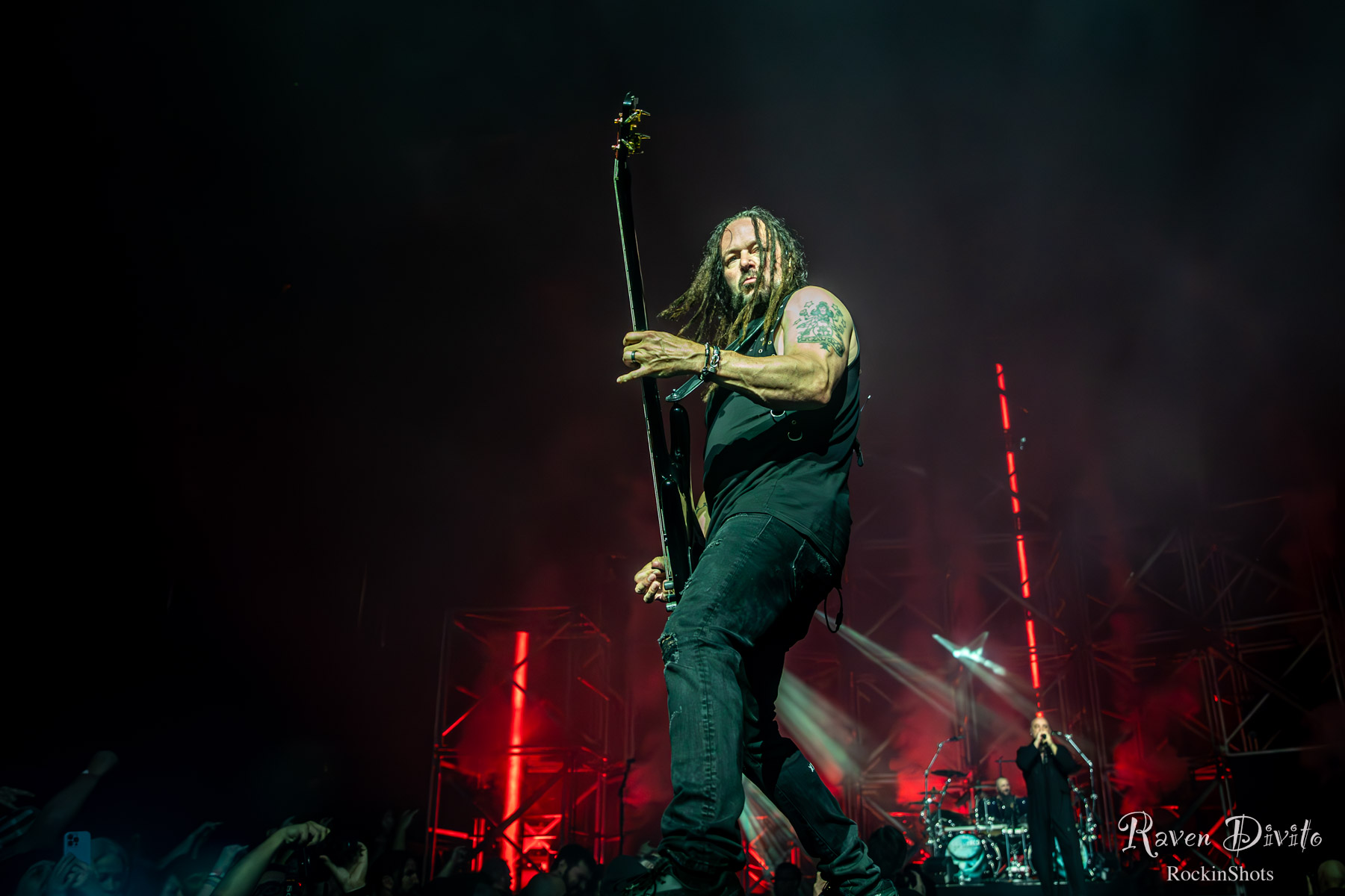 The setlist was a perfect blend of classic tracks from The Sickness, including “Stupify,” “The Game,” and “Down with the Sickness,” played in album order, which brought back memories of the initial CD experience. Side A of the album has remained a staple in their live shows, and hearing these songs live was exceptional. Side B offered a deeper dive, with Draiman’s distinctive scampering-style vocals shining on songs like “Violence Fetish,” “Fear,” and “Conflict.” These deeper cuts created a nostalgic flashback for older fans and a fresh, exhilarating experience for newer audiences.