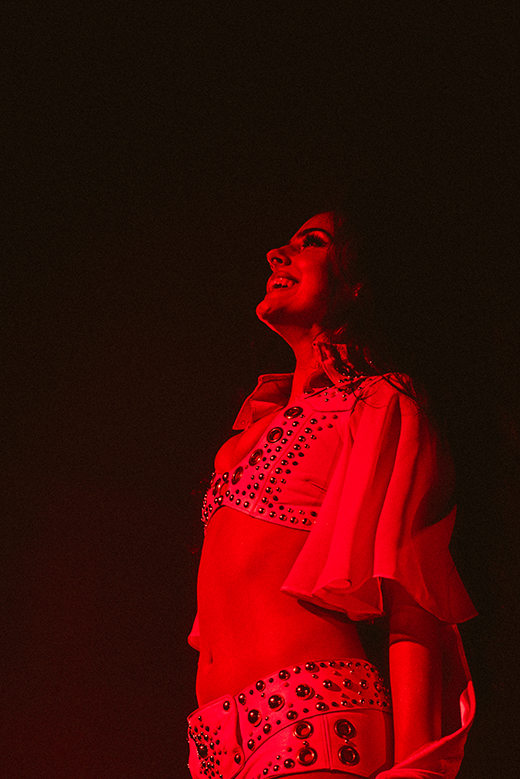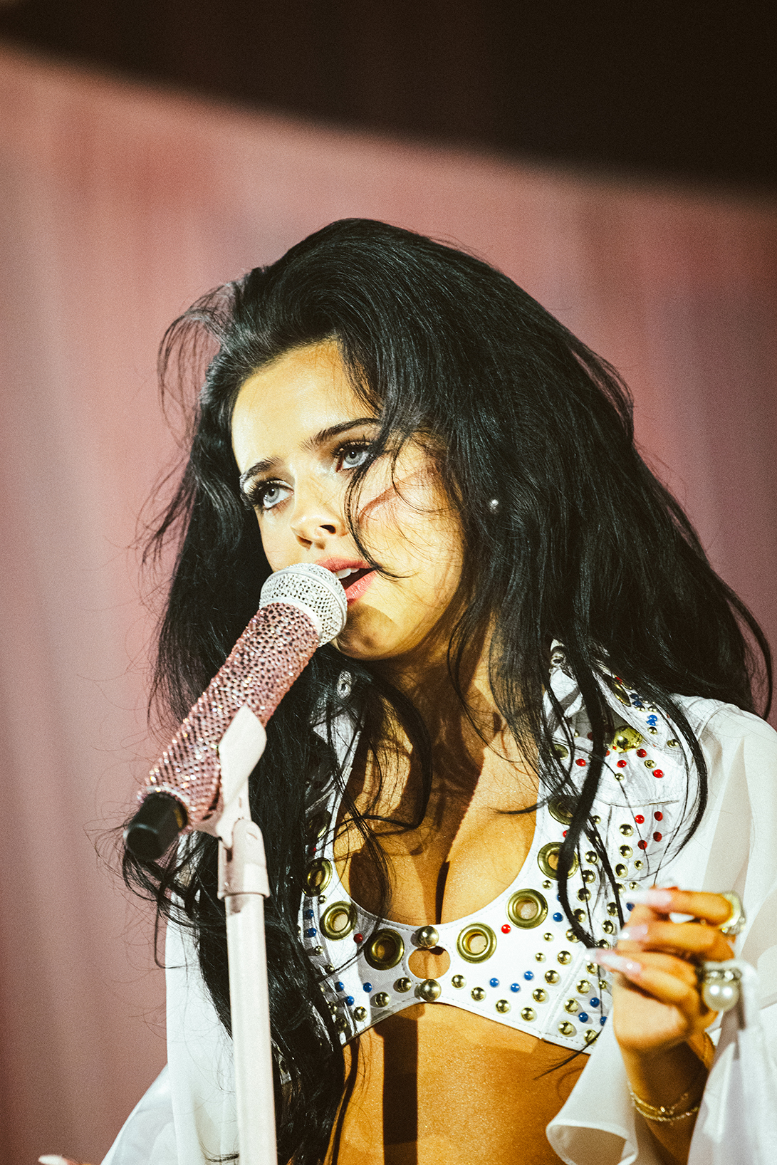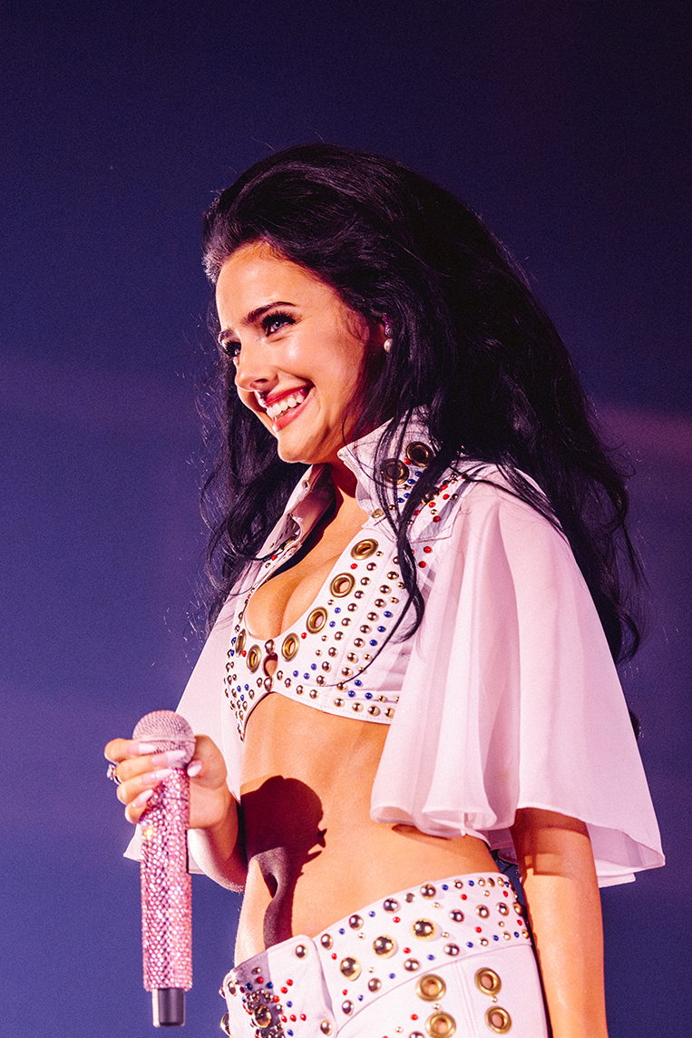 Jessie Murph brought her full theatrical stage production to the Shrine in Los Angeles on September 27, 2025 and played to a packed house of big fans. The 21-year-old played a 23 song set over the course of an hour and half and gave the crowd songs like “Gucci Mane,” “Drunk in the Bathtub,” “A Little Too Drunk,” “Sex Hysteria,” and then Don McLean came out onstage to sing “American Pie” with her. Towards the end of the night she sang “Donuts” while being carried around through the crowd, and then ended the night with her big hit “Blue Strips.”