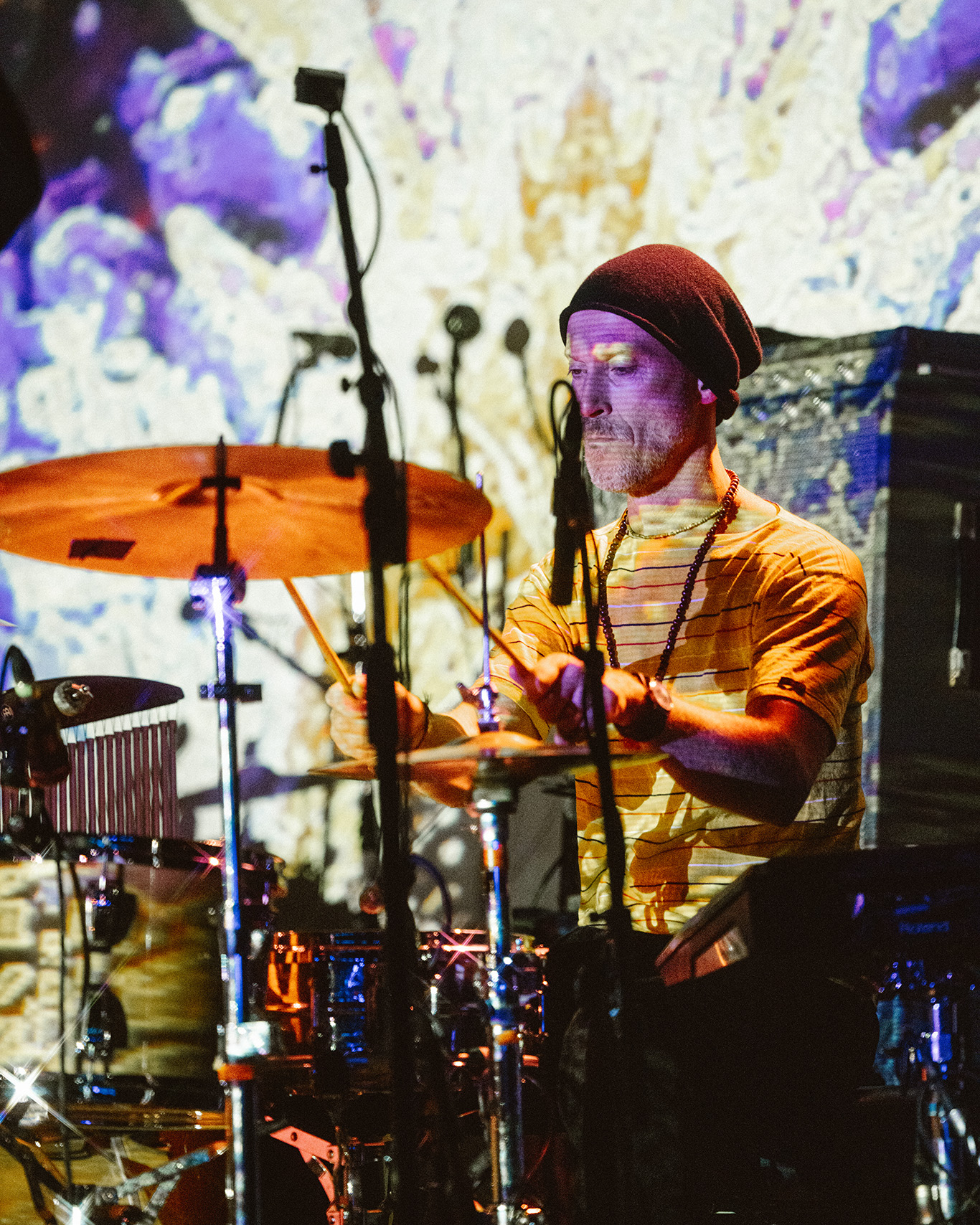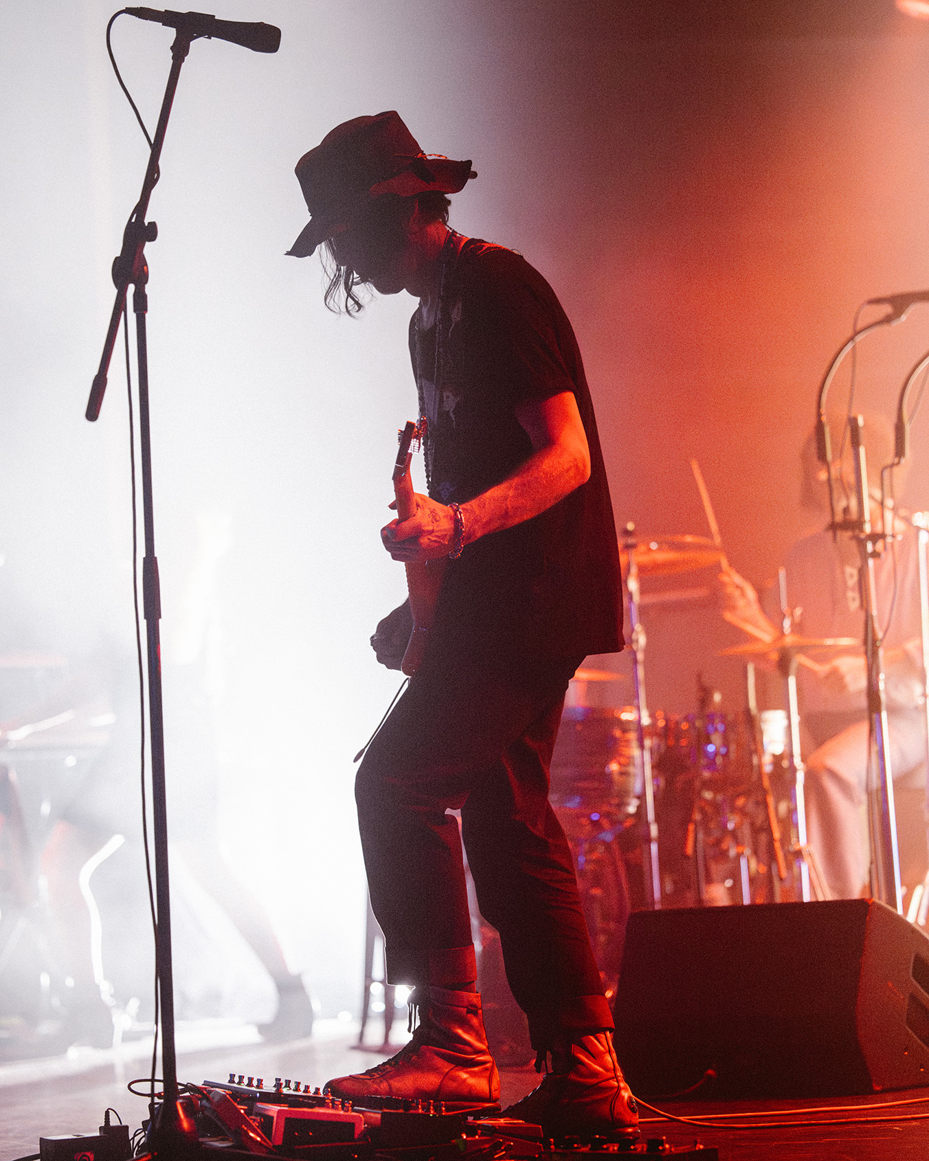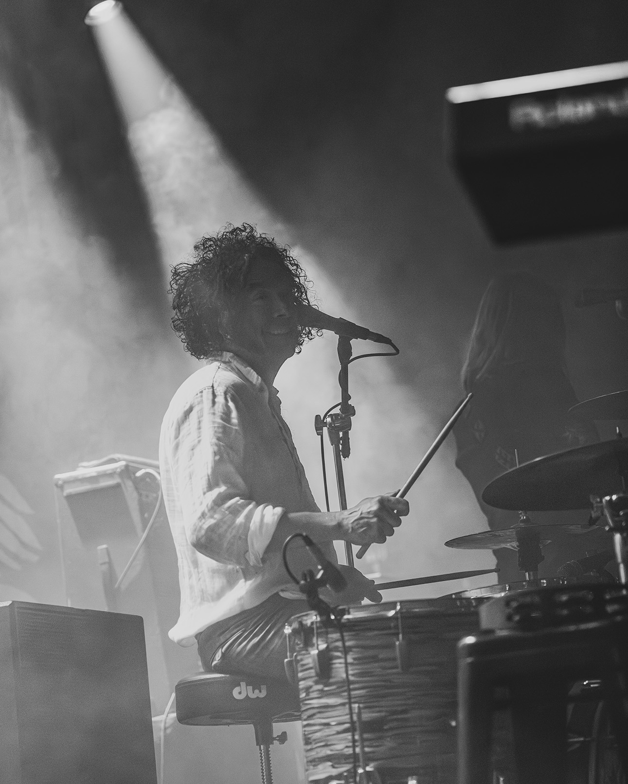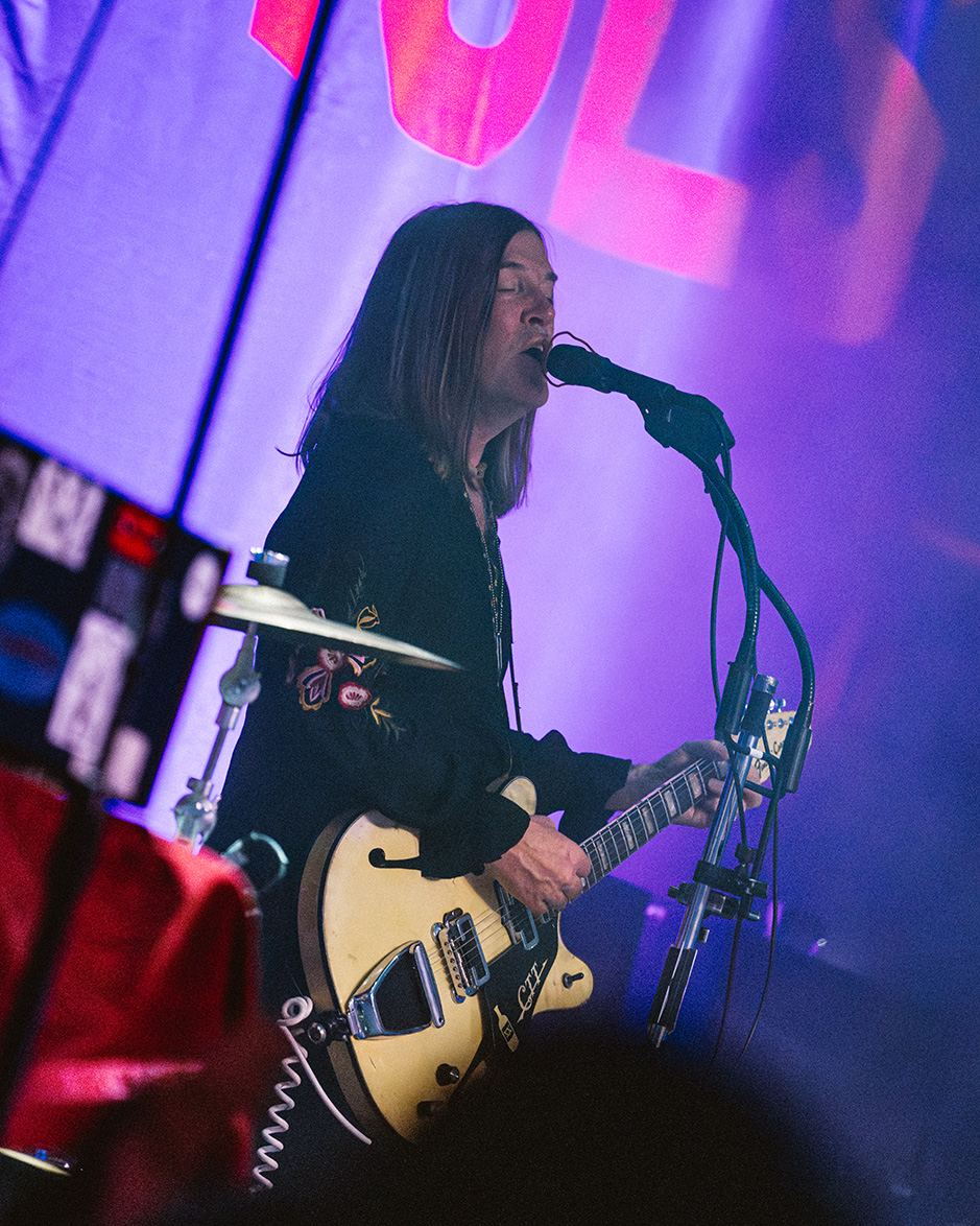 Kula Shaker opened the show and it was a fun trippy time right off the bat, with psychedelic visuals projected on the back of the stage, artfully programmed by Lance Gordon (@themadalchemistliquidliteshow). Singer Crispian Mills was a little under the weather as announced by bassist Alonza Bevan, but his voice was in fine form and he jumped around like he was fit as a fiddle. The band played favorites like “Taatva,” and “Hush,” and even threw a little Happy Mondays “Hallelujah” into the mix. They talked about traveling the US and the indivisible/dividedness of it, and played a song called “idon’twannapaymytaxes” while throwing fake money into the crowd. They’re a fun, crowd-pleasing band to see live, and their sound and musicianship has more than held up over the years. They’ll be releasing a new album in 2026 called Wormslayer.