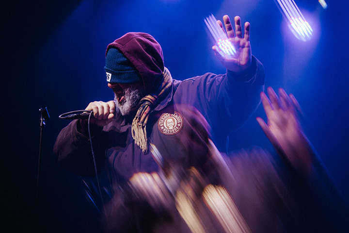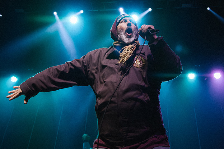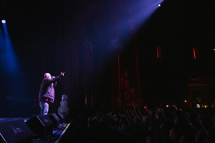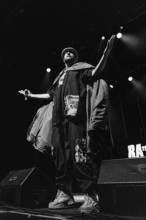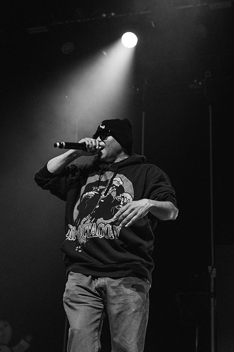 That momentum carried directly into R.A. the Rugged Man, whose performance turned the Fox into something closer to a pressure cooker. R.A. thrives on interaction, and from the moment he took the stage, he made it clear this would not be a passive experience. He demanded movement, call-and-response, and full-bodied participation, igniting mosh pits and encouraging crowd surfing with a mix of humor and intensity. Despite the chaos, there was a strong sense of control. R.A. balanced aggression with self-awareness, keeping the focus firmly on the music rather than the spectacle. His set felt deeply personal without becoming indulgent, grounded in technical skill and raw honesty.