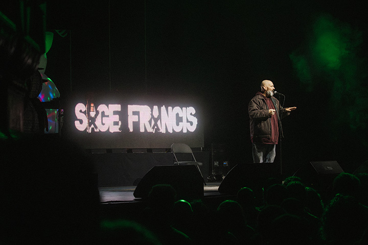 The energy shifted dramatically and intentionally when Sage Francis stepped onstage. Where earlier sets were explosive, Sage’s was connective. His bond with the audience was immediate and sincere, built on themes of love, respect, and vulnerability. The Fox Theater quieted in the best way, leaning in rather than pulling back. His performance felt intimate and almost conversational, as if the entire room had been invited into a shared emotional space. The highlight came when Sage delivered a Valentine’s moment to his wife via video chat. What could have felt gimmicky instead landed as deeply heartfelt. The moment underscored the humanity at the core of his art and reminded everyone that hip-hop can be tender without losing its edge.