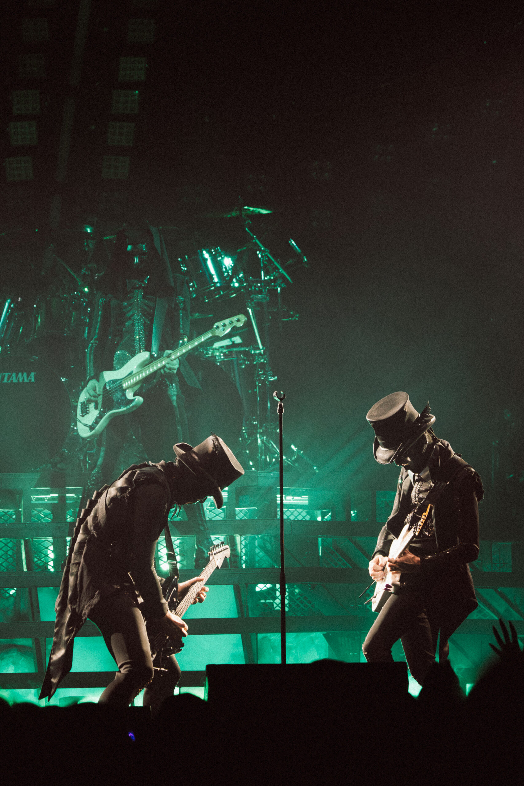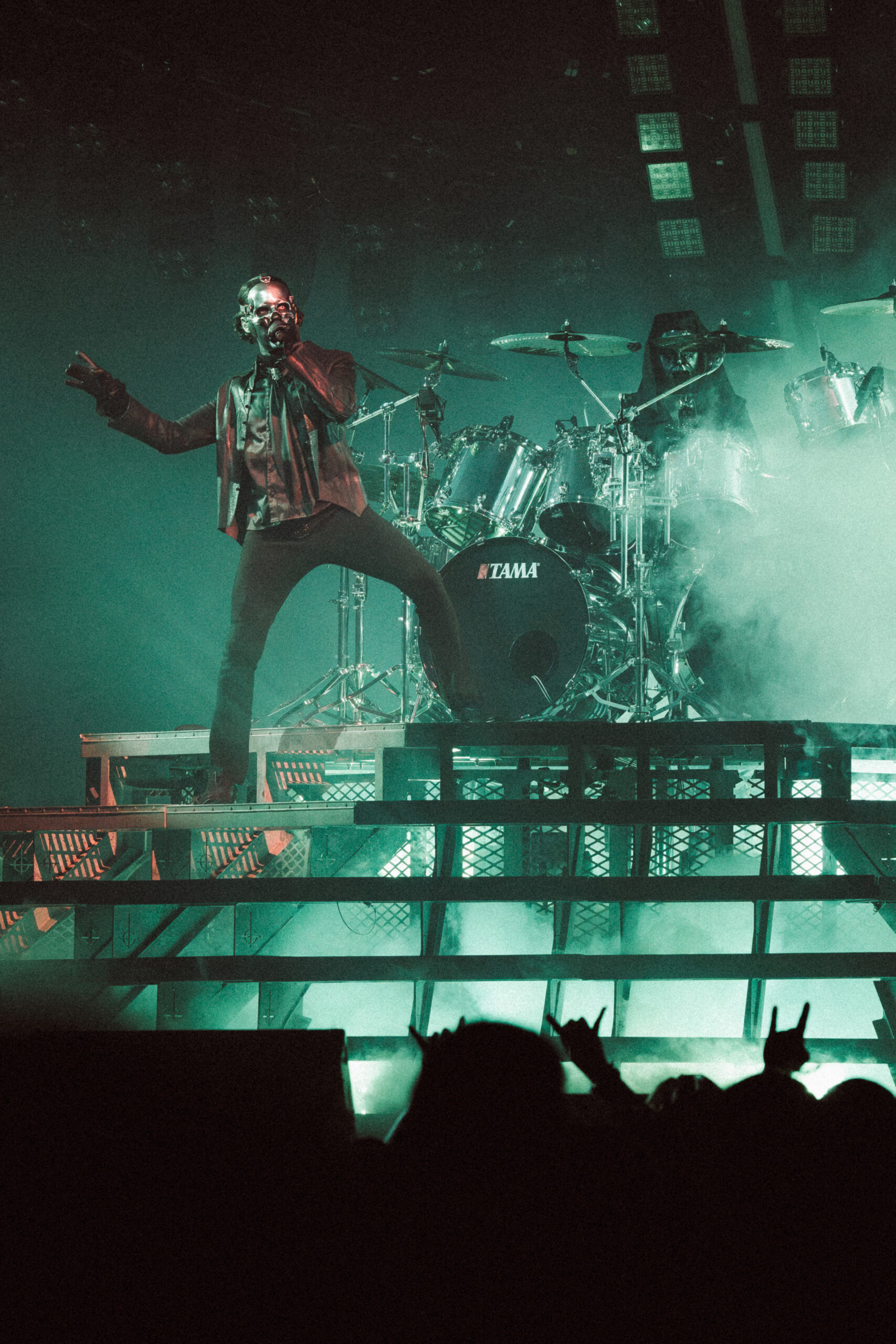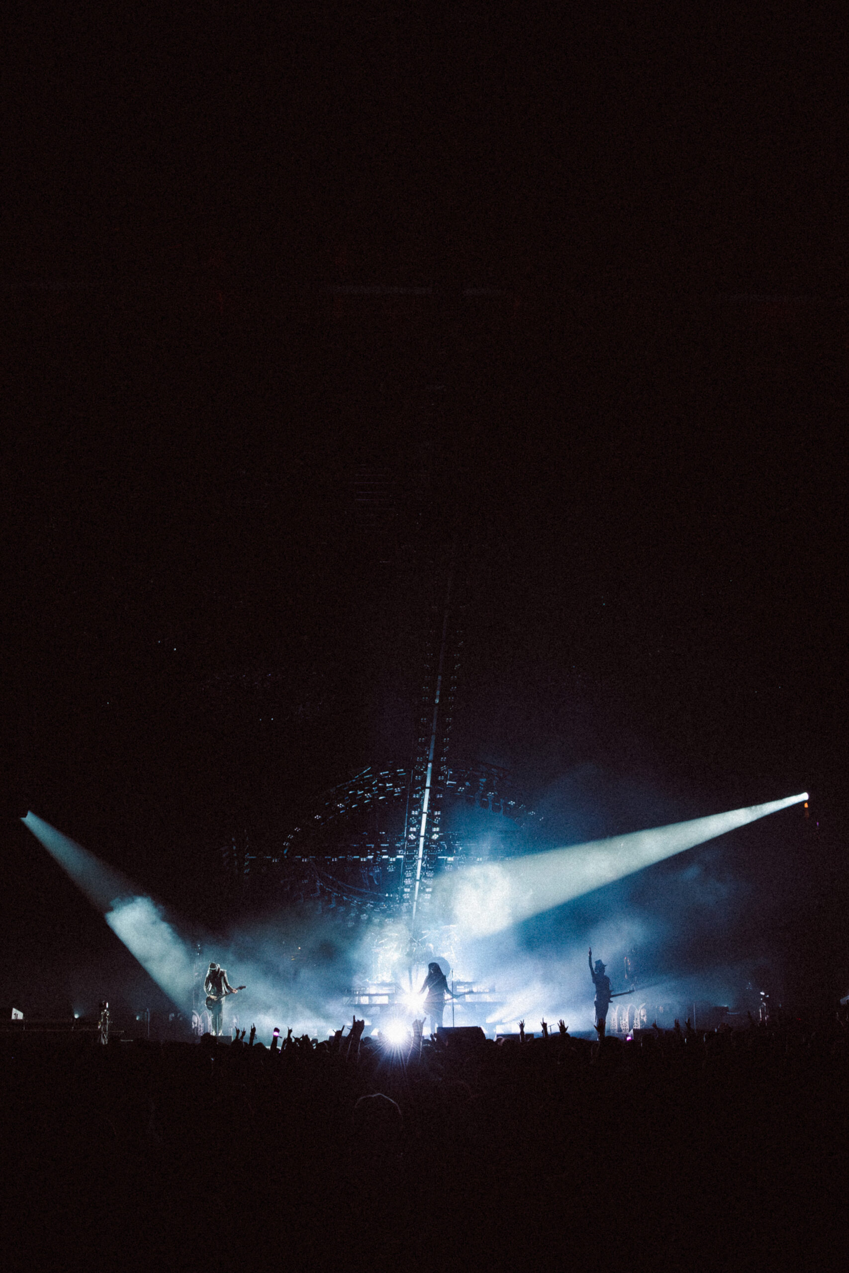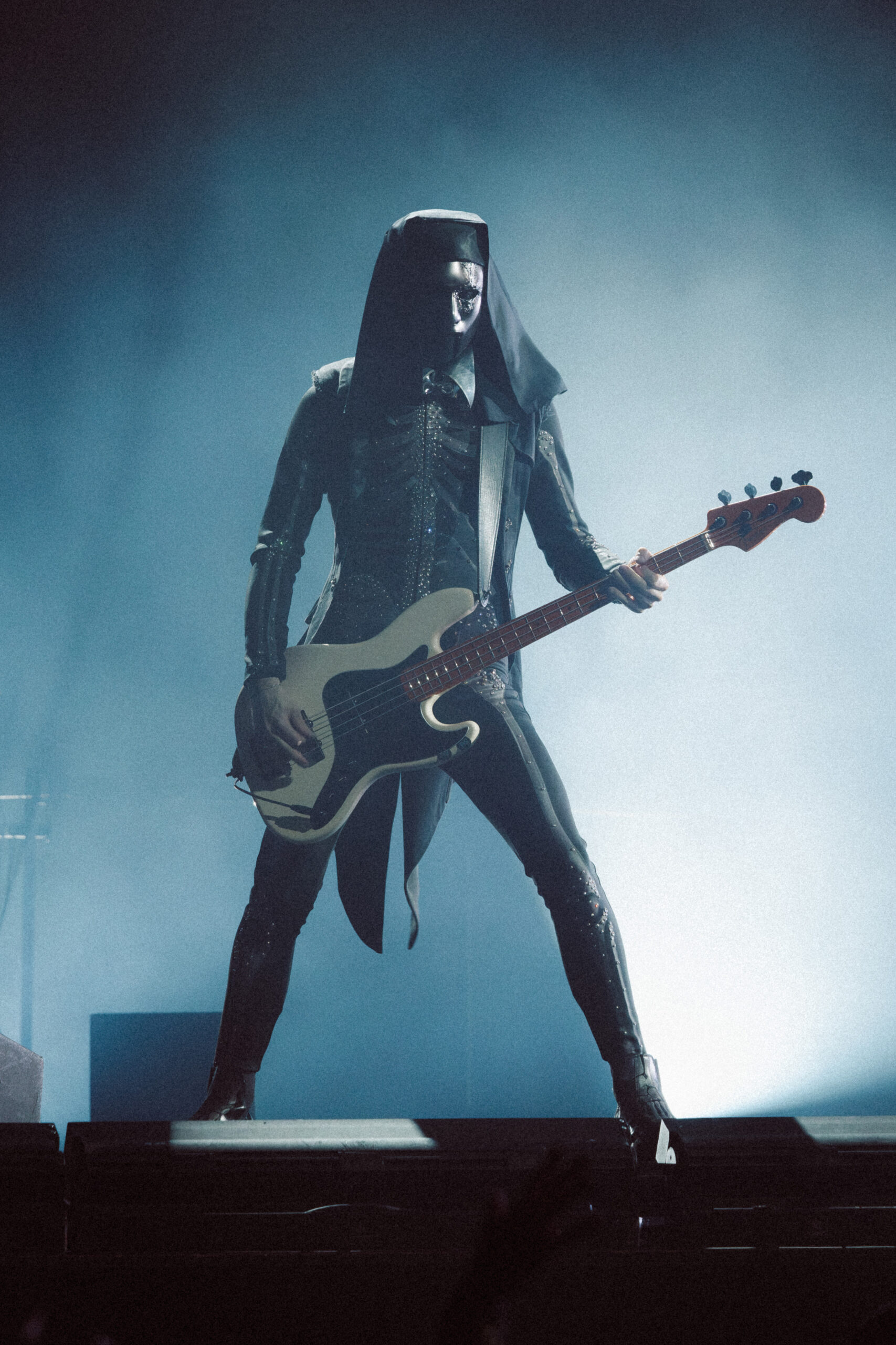 The first act opened with a towering giant cross made entirely of lights, looming over the stage like a glowing omen. Bathed in cold whites and deep purples, the band emerged to thunderous applause and immediately commanded the room. The mood was gothic, eerie, and electric. The crowd, already on its feet, never sat back down for the remainder of the night.