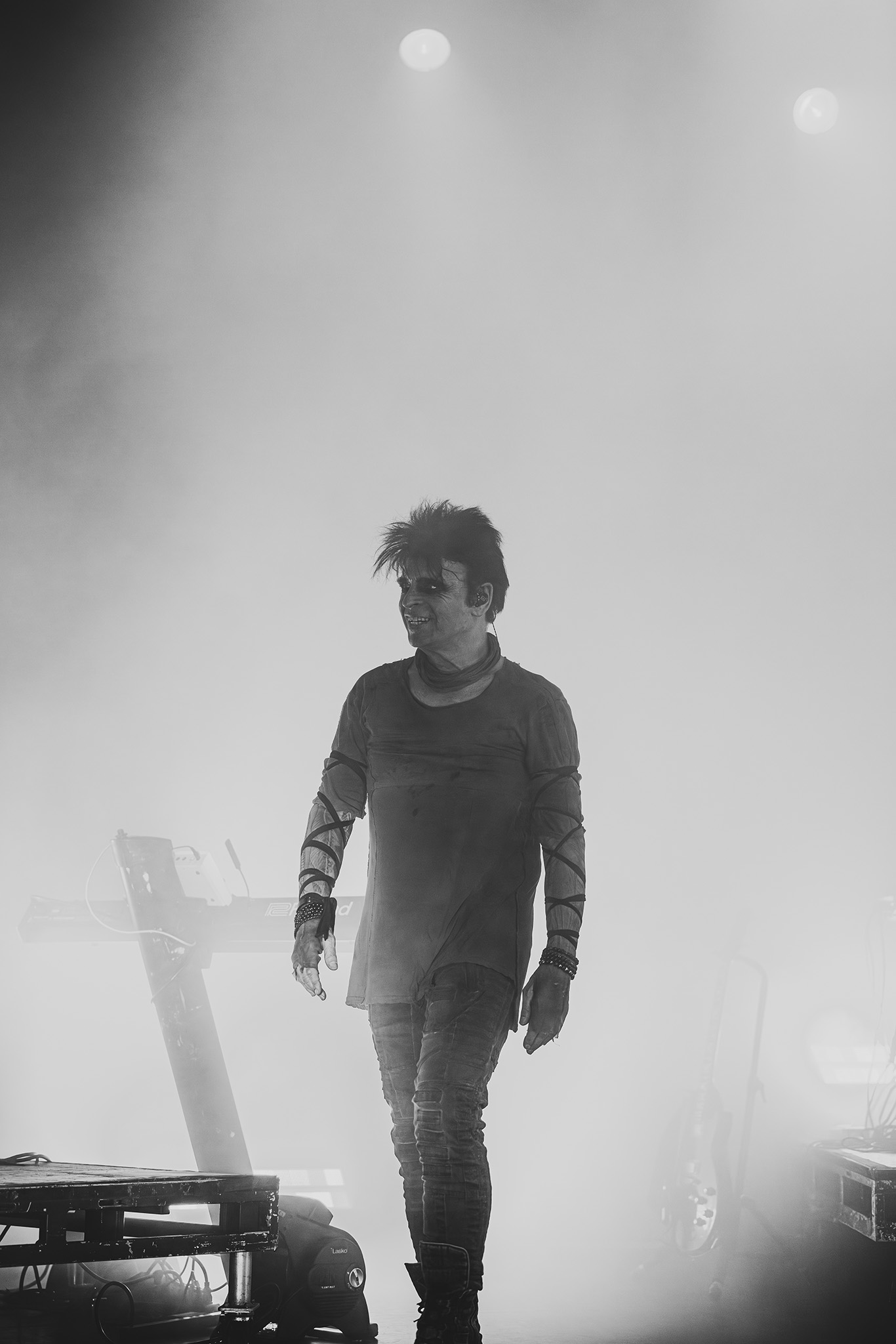 Instead of relying on nostalgia, Numan delivered a set that turned past and present into an evening that was urgent and alive. Opening with the pulsing trio of “Halo,” “Metal,” and “Haunted,” he didn’t waste time pulling the crowd into his industrial intensity. The sound was dense and driving, anchored by his tight band made up of Steve Harris, Tim Muddiman, David Brooks, and Jimmy Lucido, who were all a very big part of the performance.